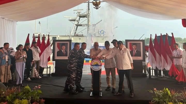 Sekda Sultra, Asrun Lio bersama perwakilan TNI AL dan Bank Indonesia, secara simbolis melepas Kick Off Ekspedisi Rupiah Berdaulat 2025 di Dermaga Pelabuhan Lanal Kendari, Jumat (25/4/2025). dok: istimewa