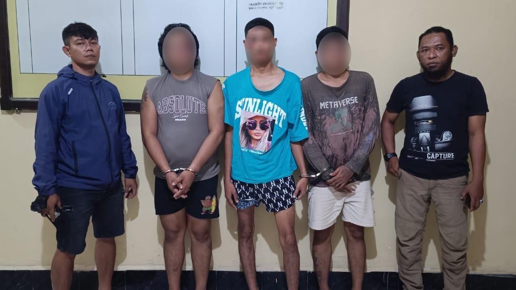 Tak butuh waktu lama, tim gabungan berhasil mengamankan tiga orang pemuda yang diduga kuat sebagai pelaku pemalakan dan pengancaman.