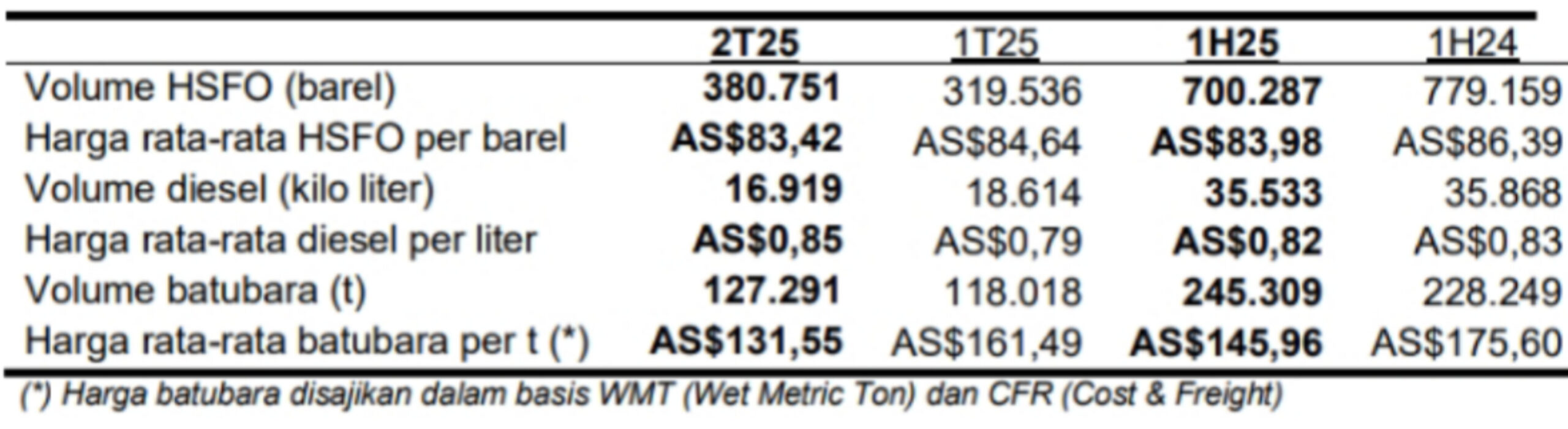 Tabel tersebut mencerminkan peningkatan konsumsi HSFO dan batubara secara triwulanan, terutama didorong oleh volume produksi yang lebih tinggi selama triwulan tersebut.
