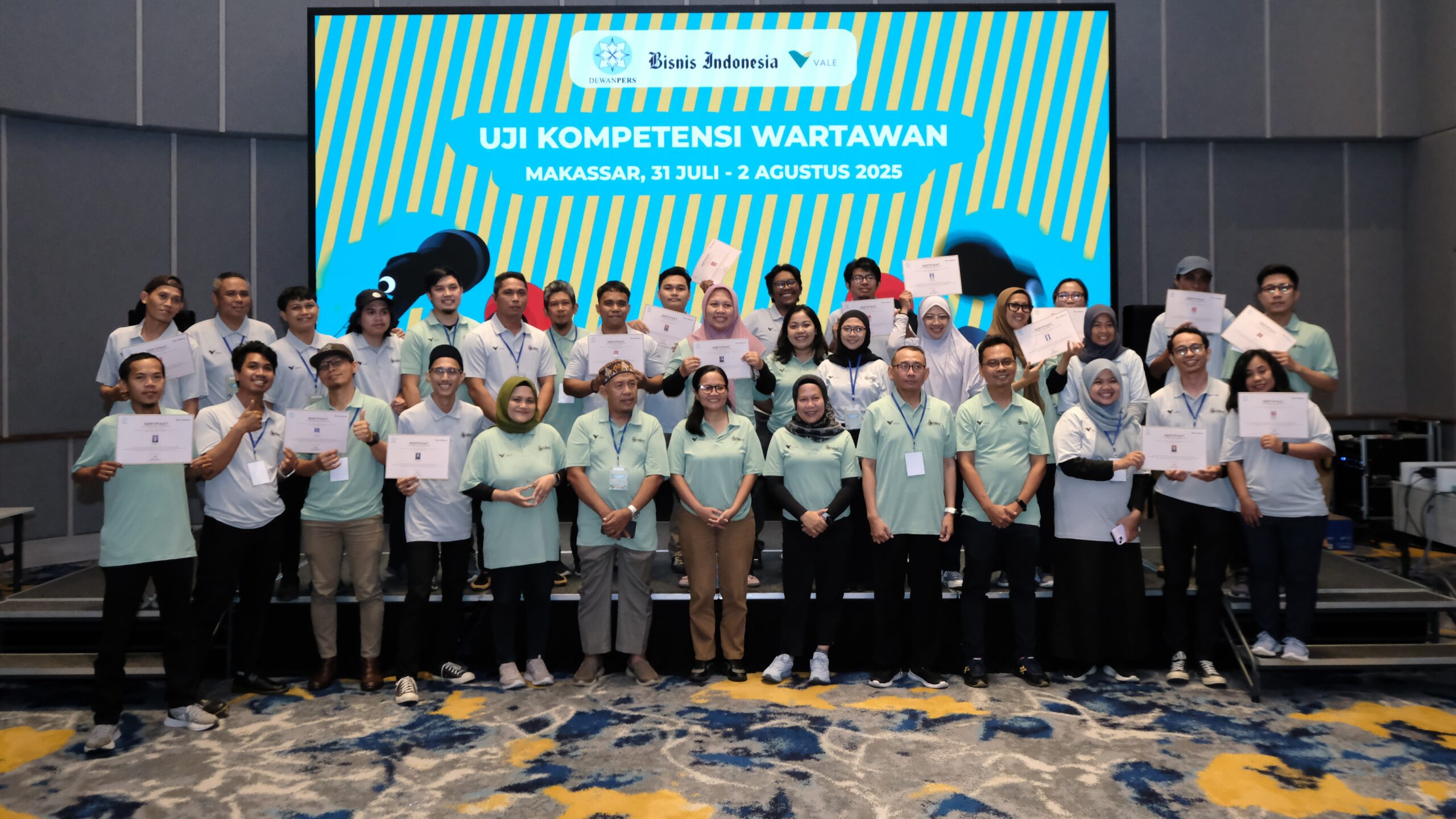 Sebanyak 27 jurnalis dari berbagai daerah di Sulsel tercatat mengikuti seluruh rangkaian ujian yang digelar oleh lembaga uji Bisnis Indonesia, bekerja sama dengan PT Vale Indonesia Tbk (PT Vale), anggota grup MIND ID, sebagai bagian dari komitmen kolektif dalam meningkatkan kualitas dan profesionalisme pers di wilayah ini.