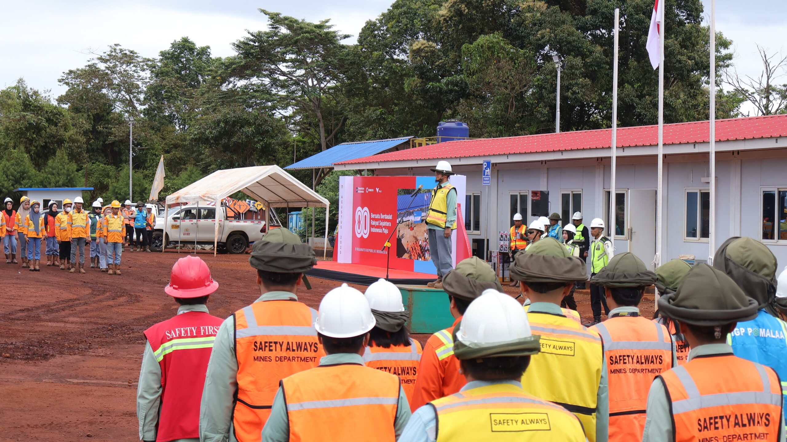 Upacara pengibaran bendera di Construction Office IGP Pomalaa dipimpin oleh Agus Nunar, Construction Specialist Pomalaa, diikuti karyawan dan kontraktor dengan penuh khidmat.